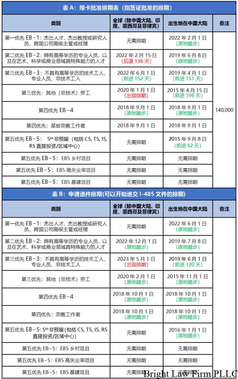 2023年5月排期EB-3两表均前进